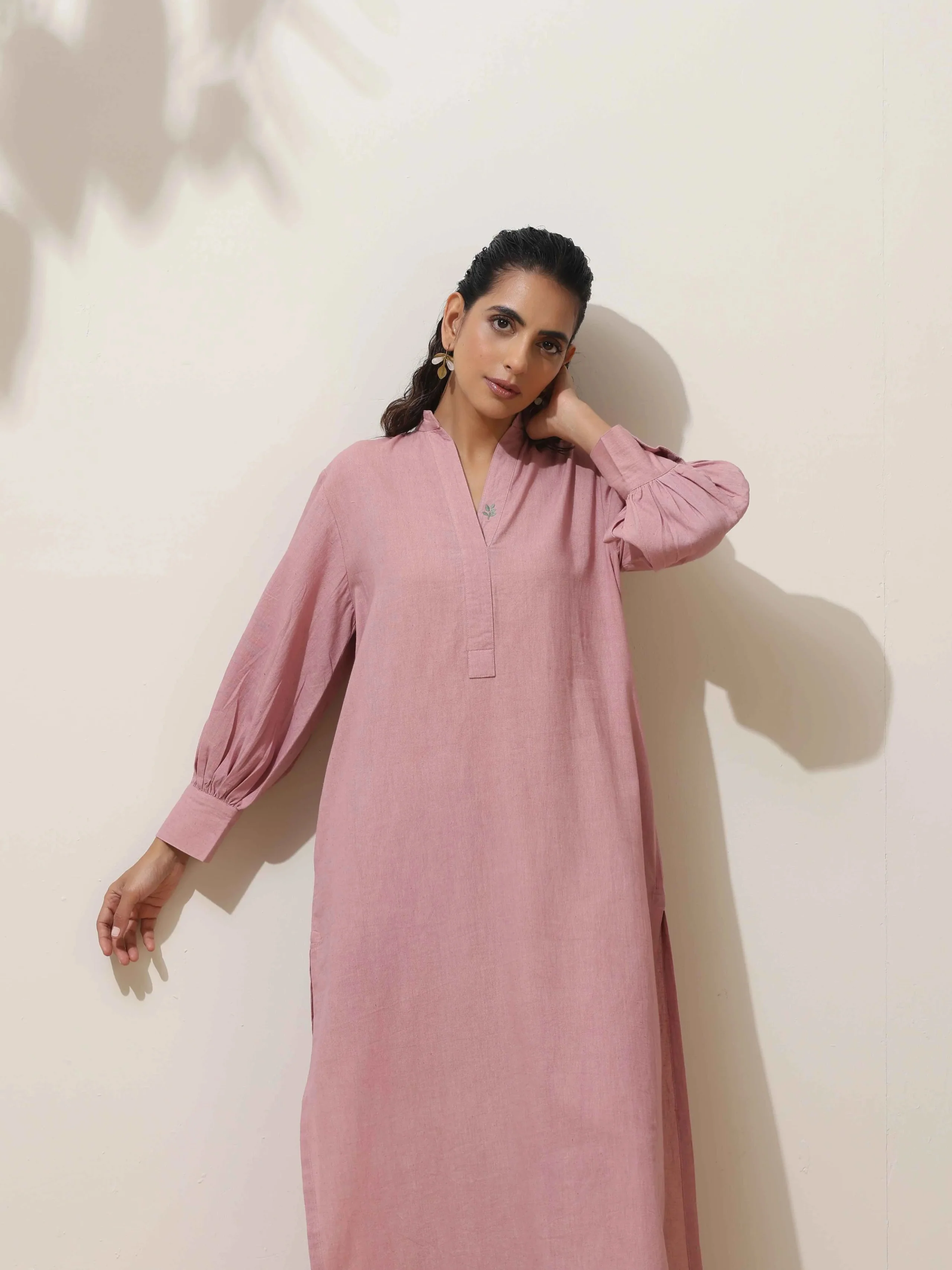 • Elevate your style with this pink kurta, paired with pink pants. It's an ideal blend of elegance and comfort. Perfect for casual gatherings, or workwear, this ensemble adds a touch of sophistication to your wardrobe.